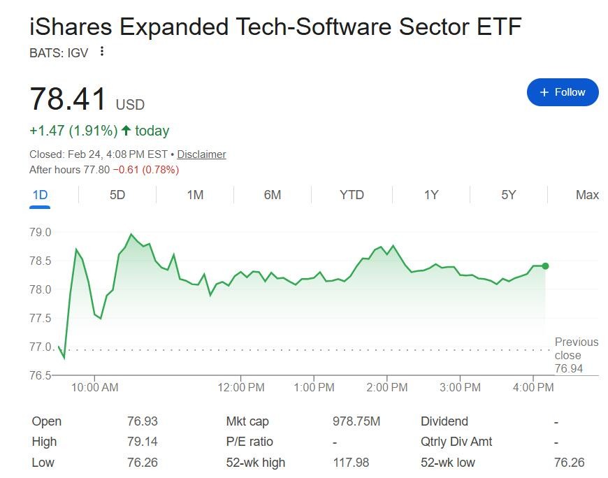 由於市場對 Anthropic 發佈內容的普遍擔憂,三大美股指至少收跌約 1%,iShares 的軟件業 ETF IGV 跌近 5%。週二 Anthropic 發佈會期間,該 ETF 一度漲近 2.9%,收漲 1.9%,但 2026 年以來還有將近 26% 的累計跌幅。