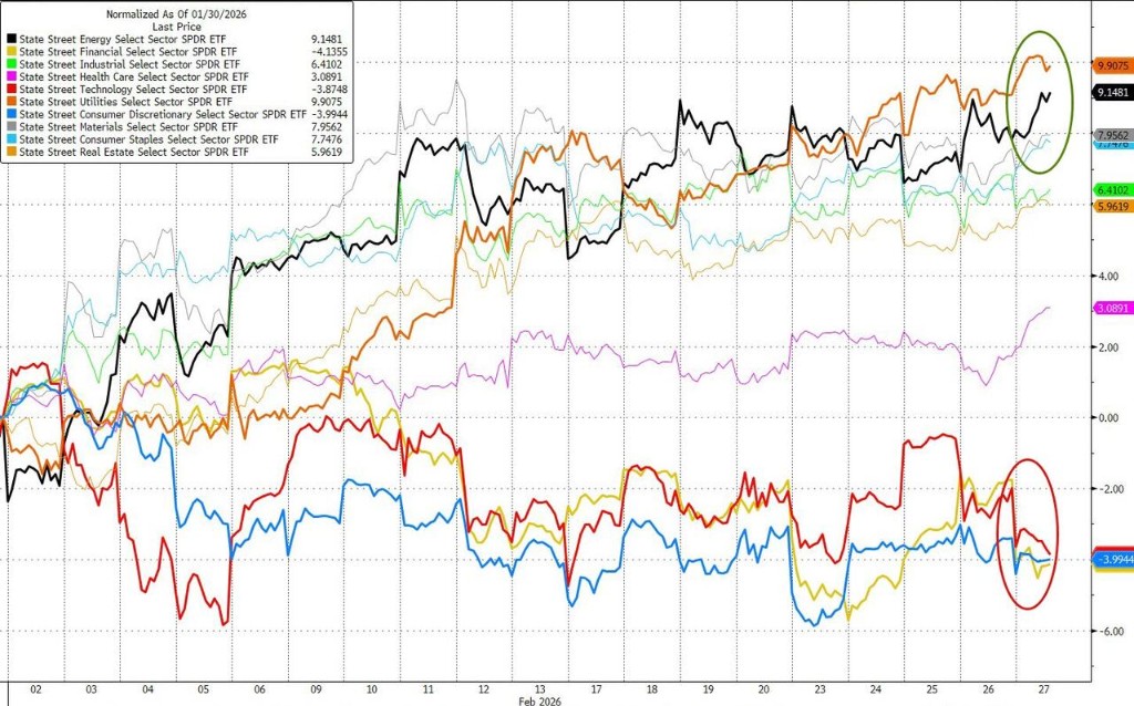 本月科技、金融和可選消費板塊表現最差,而公用事業、能源和材料板塊則表現優異。