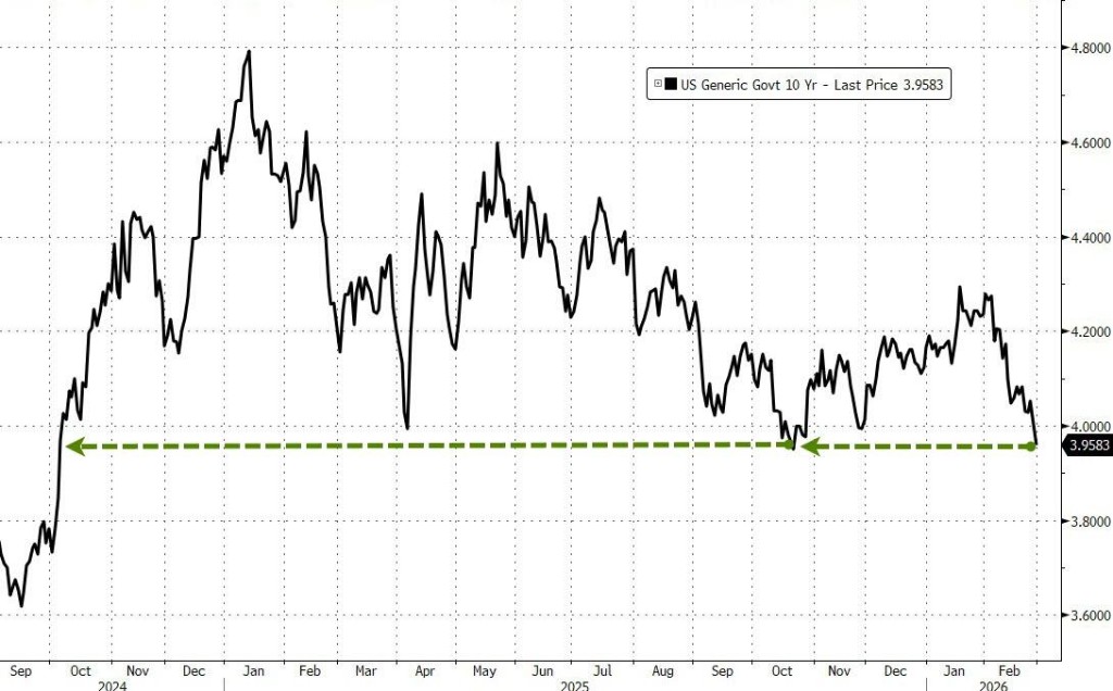市場避險情緒繼續升温的背景下,10 年期國債收益率下跌 5.7 個基點,跌破了 4.00% 的關鍵心理關口,為去年 10 月以來首次。 美元指數震盪微跌 0.12%。本月來看,美元指數也僅漲 0.6%。