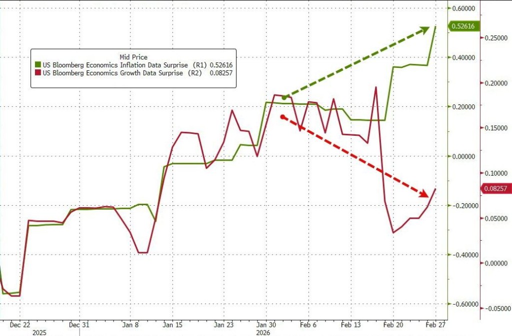 據華爾街見聞,美國 1 月核心 PPI 創一年最快增速,美聯儲貨幣政策複雜化加劇。數據印證了 “反金髮姑娘” 理論:通脹意外走高,而經濟增長卻意外下滑。