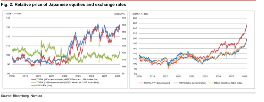 然而,當市場焦慮從產業顛覆轉向全球信貸風險與地緣政治衝突時,日本的風險敞口暴露無遺——其高度依賴石油進口的結構性弱點,以及對全球經濟週期的極度敏感,使其避險光環瞬間褪色。