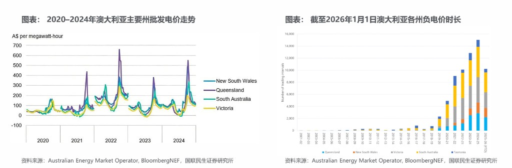 可再生能源快速擴張帶來日內電價波動加劇與負電價頻發。2025 年第四季度,可再生能源在澳大利亞能源結構中佔比首次超過半數,南澳大利亞州所有交易時段中有 48.4% 出現負電價。峯谷價差擴大與負電價頻發,為户儲套利創造了客觀空間,推動居民安裝儲能系統的經濟動機增強。