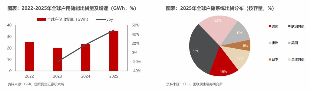 國聯民生證券在 31 日發佈的儲能行業深度報告中指出,2025 年全球户用儲能系統出貨量約 35GWh,同比增長近 50%,標誌着行業歷經庫存調整後進入新一輪需求釋放週期。