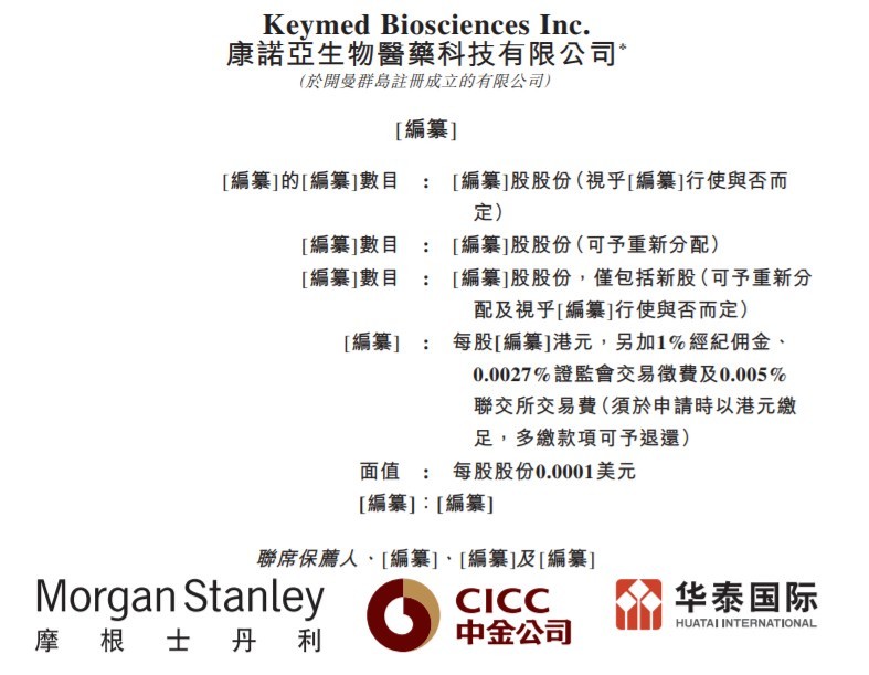 4 月 8 日披露,康诺亚生物医药科技有限公司向港交所主板申请上市,大摩、中金公司、华泰国际为其联席保荐人。