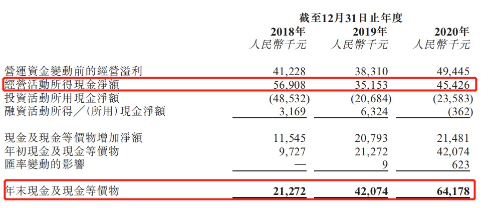 現金流方面,閩東紅集團手上握得現金也處於不斷增長的狀態中——2018 年至 2020 年,該公司期末現金及現金等價物分別為 2127 萬元、4207 萬元及 6418 萬元。同期,得益於現金及現金等價物的增長,該公司的流動資產淨值亦不斷攀升,分別為 2418 萬元、5397 萬元、6950 萬元。