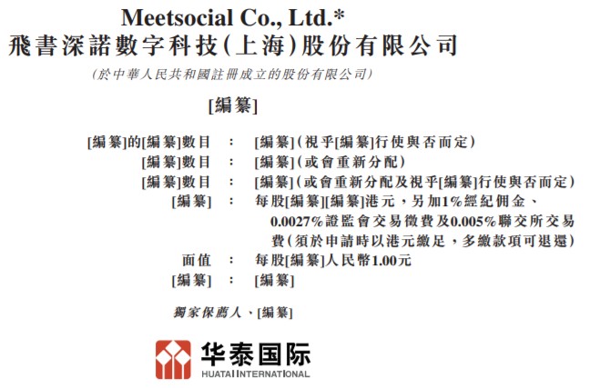 4 月 9 日,飞书深诺数字科技 (上海) 股份有限公司向港交所递交上市申请,华泰国际为其独家保荐人。