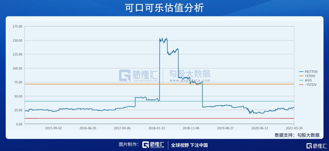 另外,我們再看國際食品飲料巨頭可口可樂,過去 5 年已經基本沒有增長了,但依然享有了 25 倍的估值。