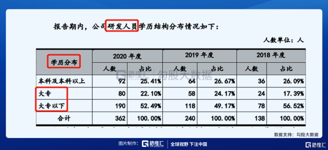 其二,研發人員學歷結構總體偏低,大專及大專以下佔比達 74%。