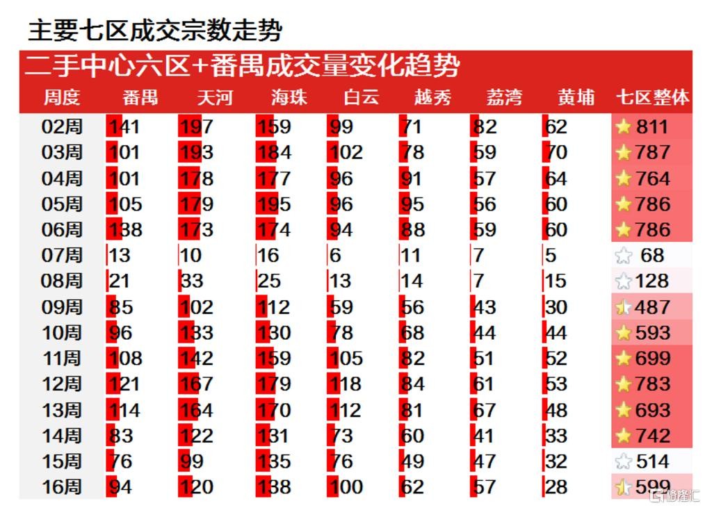 而量在價先,上週白雲區的成交量是除了天河、海珠以外,最明顯的。其成交量為 100 宗,環比上漲 31.6%。