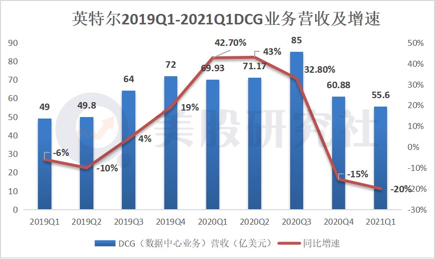 從業務來看,英特爾主要業務和收入來源是 CCG 業務和 DCG 業務,兩大業務佔比約 9 成。其中,DCG 業務當季收入 55.6 億美元,同比下降 21%,市場預期 58.9 億美元。