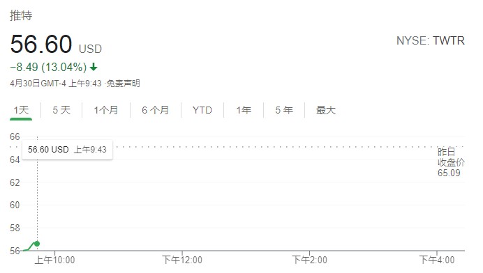 推特跌超 13%。財報顯示其一季度業績報告略微好於市場預期,但二季度月活用户數增幅放緩。