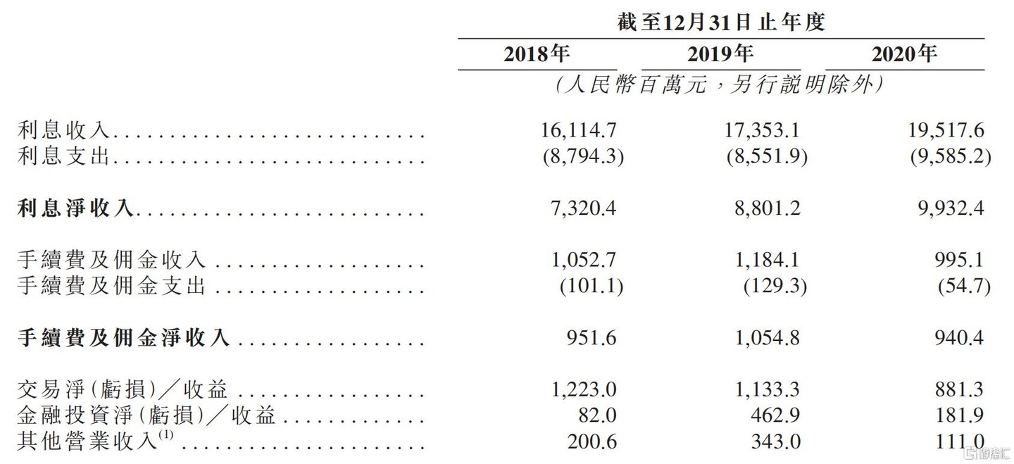 上市申請書顯示:截至 2020 年 12 月 31 日,東莞農商行實現利息淨收入為 99.32 億元,相比於 2018 年淨增加 26.12 億元,累計增長 35.68%。利息淨收入佔總營收的比值達 82.45%,相比於 2018 年的 74.87%,累計上升 7.58 個百分點。