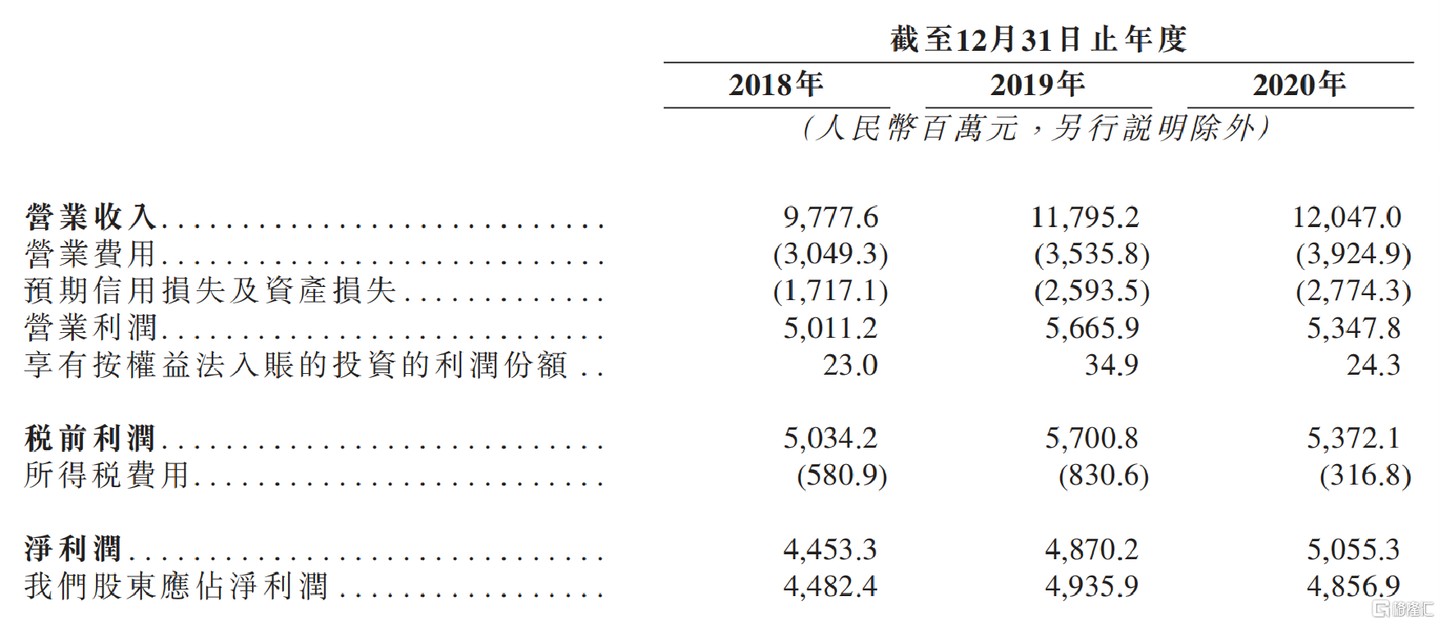 上市申請書顯示:截至 2020 年 12 月 31 日,東莞農商行實現營業收入 120.47 億元,相比於 2018 年的 97.78 億元,累計增長 23.2%;淨利潤從 2018 年的 44.53 億元增長至 2020 年的 50.55 億元,累計增長率達 13.5%。