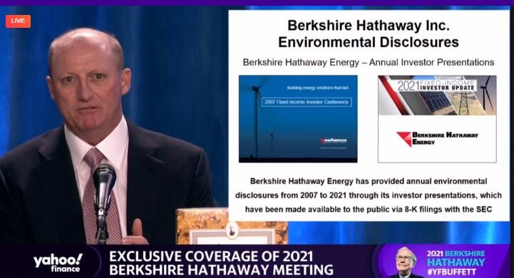 曾經擔任伯克希爾能源業務主管的現任副董事長 Greg Abel 表示,2007 年時候我們已經提出氣候變化是個威脅,當時提到了創新,如何設立合理目標,之後我們都圍繞去碳化開展。