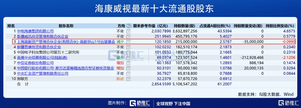 值得注意的是,這些機構當中持倉最大的是馮柳旗下的高毅鄰山 1 號遠望基金,最新的公司報告來看,儘管減倉但還是位第三大流通股股東,期末持倉市值超 120 億元。