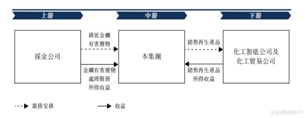 鴻承環保的業務模式為,上游客户主要委聘公司提供氰化尾渣處理服務。在營運過程中,鴻承環保能夠為金礦有害廢物分解毒素。此外,公司可以從金礦有害廢物中提取具有經濟價值的資源,主要包括硫精礦及含金硫精礦等再生產品,這些再生品可用於生產硫磺及硫酸。公司將再生產品出售給化工製造公司及化工貿易公司等下游客户。
