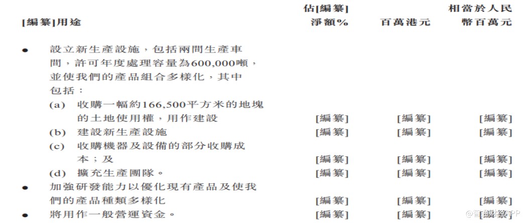 鴻承環保在招股書中披露,公司擬上市募資建設的新生產設施,新產能將於 2022 年底前分兩期完成,第一期將為金礦有害廢物處理生產區和新研發實驗室的建設及第二期將為再生產品(包括建築骨料)生產區的建設。新生產設施包括兩間生產車間,許可年度處理容量為 60 萬噸。