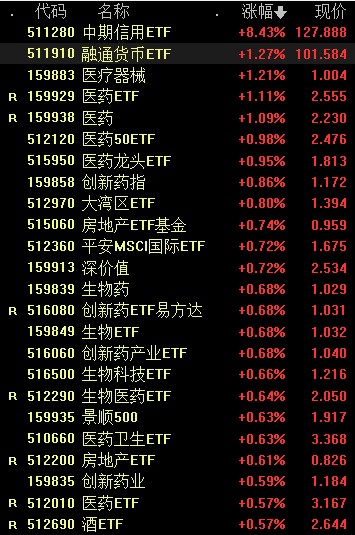 鋼鐵、煤炭、有色金屬 ETF 均跌超 5%,能源 ETF 跌 3.52%;生物醫藥、房地產、酒 ETF 等收漲。