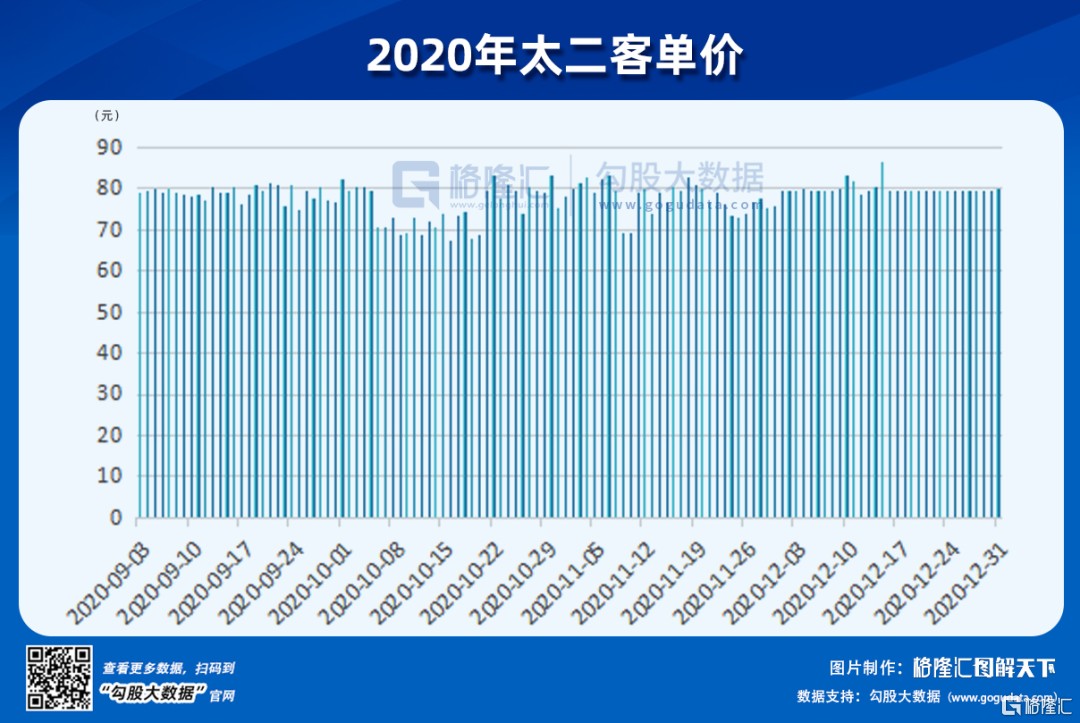 由於 “九毛九” 和 “太二” 的營收為九毛九集團營收的主要佔比,於是勾股大數據提供了 “九毛九” 和 “太二” 品牌的門店數、客單價的每日預測,尤其是九毛九集團在不斷擴張 “太二” 品牌門店,勾股大數據還額外提供了 “太二” 品牌餐廳的翻枱率預測,掌握這幾個指標,基本可以預測出九毛九集團的總營收,清楚瞭解九毛九集團的發展前景。下文將展示幾個指標圖示(僅展示部分時期):