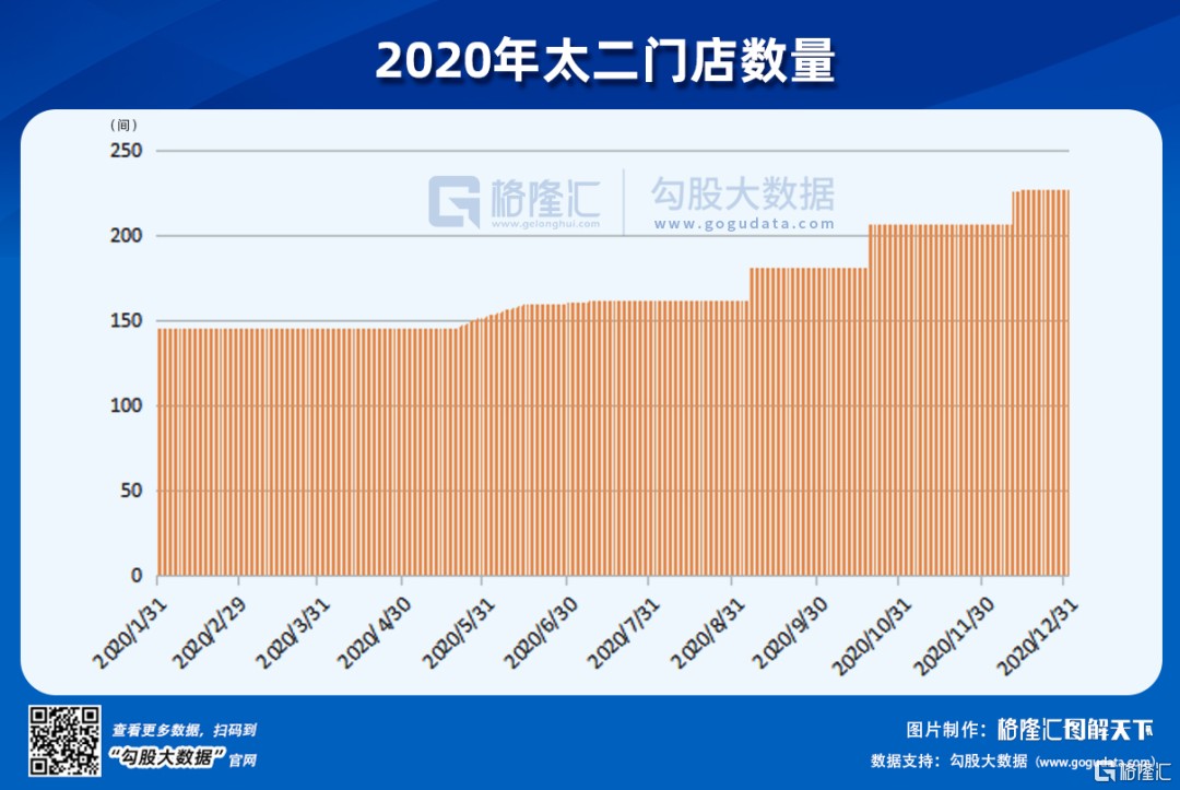 “太二” 品牌的營收在疫情之下還增長迅速,主要是有兩點原因:1.其一直在不斷擴張門店,由 2019 年的 126 家擴張到了 233 家,同比增長 84.92%;2.外賣業務收入截至 2019 年 12 月 31 日止年度的人民幣 213.8 百萬元上升 121.6% 至截至 2020 年 12 月 31 日止年度的人民幣 473.8 萬元,主要由太二餐廳於 2020 年 2 月下旬開設食品外賣服務所致。因此,外賣業務收入佔總收入的比例由截至 2019 年 12 月 31 日止年度的 8.0% 上升至截至 2020 年 12 月 31 日止年度的 17.5%。