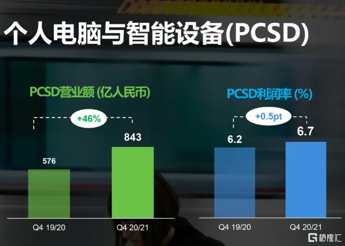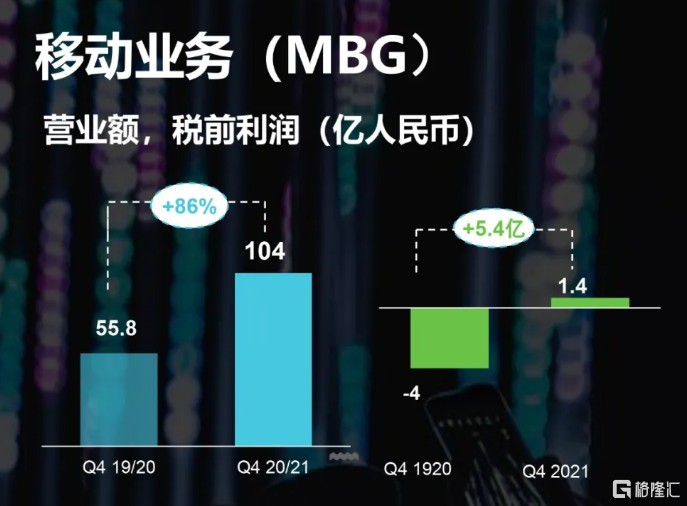 而移動業務集團儘管在上半年受疫情影響,下半年快速重回高成長勢頭,營業額於下半財年同比增長達 39%,於第四財季更是同比增長達 86%,税前利潤達到 1.4 億人民幣,創造了併購摩托羅拉移動以來的新高。