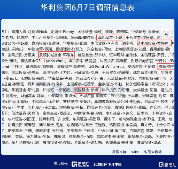在最新的華利集團調研信息顯示,超過五十家國內外投資機構參加,其中高瓴、高毅、淡水泉、景順長城甚至是外資新加坡政府投資公司。而在剛剛上市的前兩個月,迎來了交銀、IDG 資本、野村資管等多家知名機構的實地調研。