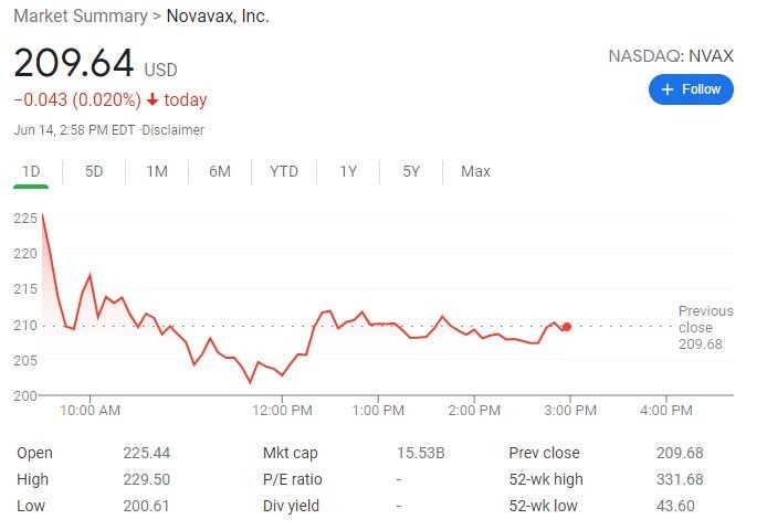 當時公司還稱,由於原材料短缺問題,已經暫停其提高產能的計劃,並預計生產提速在第四季度才能取得明顯進展。受此消息影響,諾瓦瓦克斯股價曾在 5 月第二週承壓累跌超 25%。