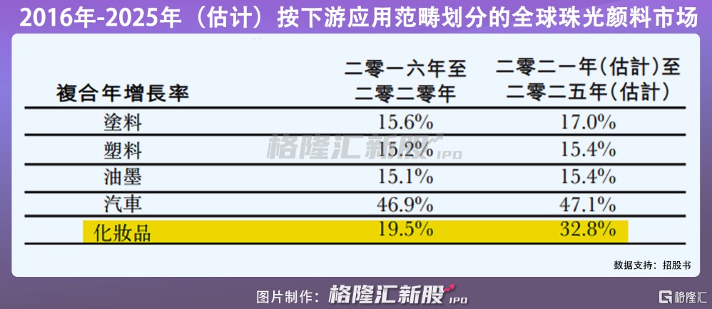 環球新材所在的珠光顏料市場已經進入了快速發展期,而根據招股書中的財務數據,環球新材過去三個財年的複合增長率跑贏了行業增長。