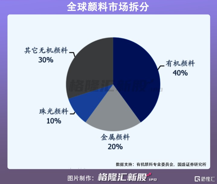 目前,全球顏料市場大致分為有機顏料、金屬顏料、珠光顏料和其他無機顏料四個部分。