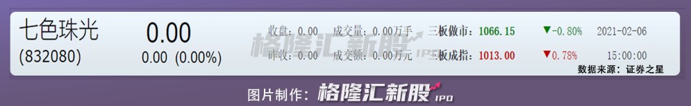 摘牌後,七色珠光與安信證券在廣義證監局輔導備案,擬在 A 股上市。但 2020 年 10 月 19 日,公司向廣西證監局提交了終止上市輔導工作的報告。兩個月後,七色珠光更名環球新材,衝刺港股。