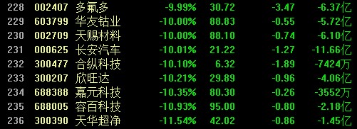 汽車整車、鋰電板塊集體重挫,長安汽車、長城汽車、北汽藍谷、華友鈷業等多股跌停,半導體芯片股延續強勢,油氣股在油價大漲刺激下走強。