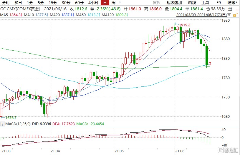 這次會議,決定將基準利率維持在 0% 到 0.25% 的目標區間不變,每月債券購買規模也保持在 1200 億美元,符合市場預期,但同時也釋放出鷹派信號,點陣圖預測美聯儲 2023 年底前將至少加息兩次。