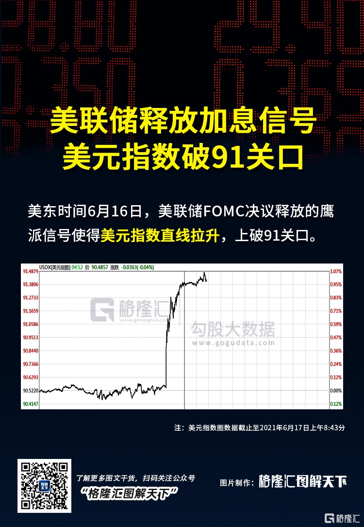 美元即期匯率指數上漲 0.6%,盤中一度破 0.7%,為 1 月 27 日以來最大漲幅,美元指數則直線升破 91 關口。