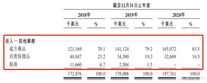數據顯示,2018-2020 年,和黃醫藥的營收收入分別為 2.14 億美元、2.04 億美元和 2.28 億美元,但其中依靠處方藥和保健品銷售收入的商業平台幾乎貢獻了 80% 的業績。