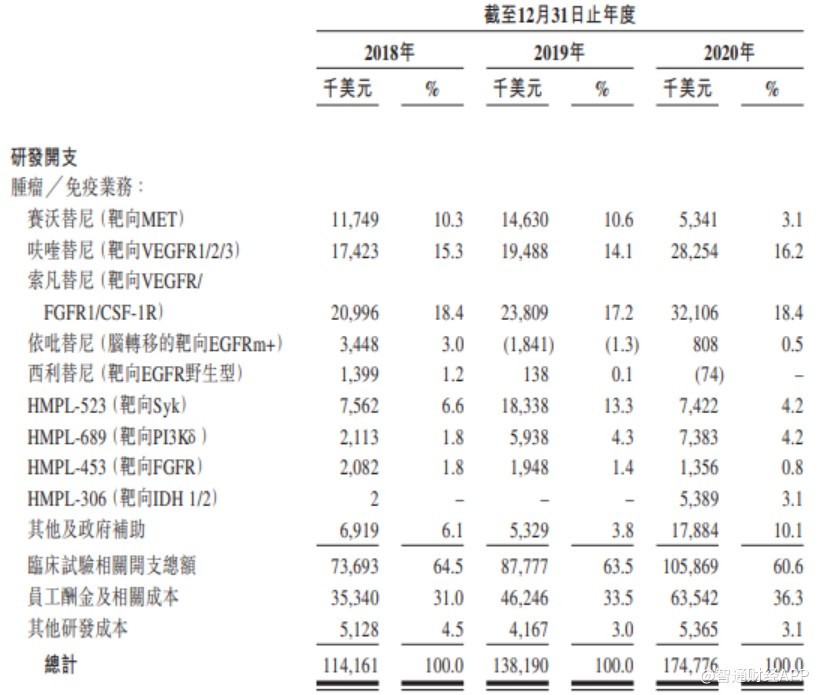 正如招股書中提到的,淨虧損增加主要由於臨牀活動大幅擴展導致研發開支增加所致。2018 年到 2020 年,公司研發費用分別為 1.14 億美元、1.38 億美元及 1.75 億美元。