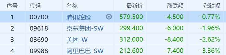 港股互聯網巨頭普跌,阿里巴巴跌 3.36%,美團跌 2.62%,京東跌近 2%。日前,廣東省市場監督管理局對廣東省人大代表葉麗燕於省十三屆人大四次會議中提出的關於加強互聯網新經濟模式監管的建議做出答覆。答覆函透露,競爭執法將被突出,重點加強對大型互聯網平台 “二選一”“大數據殺熟”“封禁” 等行為的執法規制,依法查處社區團購等領域利用資本優勢低價排擠競爭對手、搶佔市場行為,規範平台和平台內經營者價格標示、價格促銷、價格欺詐等行為。