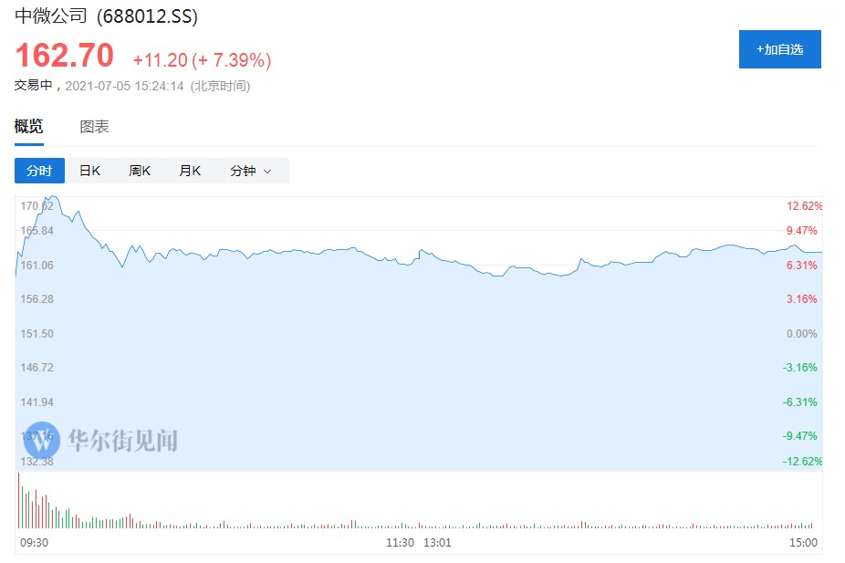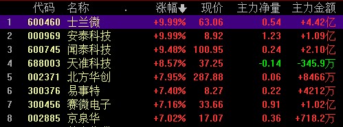 半導體芯片股早盤拉昇,中微公司漲 12%,後小幅反彈。敏芯股份、聞泰科技、北方華創、至純科技等漲幅居前。