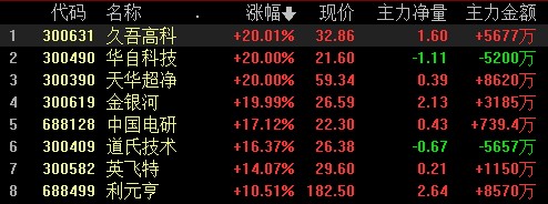 鋰電股午後繼續掀漲停潮,板塊指數大漲超 3% 創歷史新高,久吾高科、天華超淨、華自科技等近 20 股漲停。