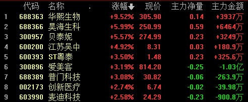 醫美概念股回暖,華熙生物大漲超 9% 股價創歷史新高,總市值超 1500 億,昊海生科、貝泰妮漲超 5%。