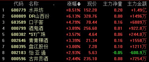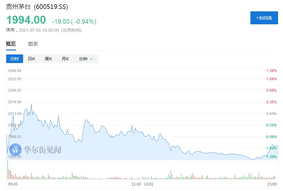 白酒概念開盤異動拉昇,隨後小幅反彈。水井坊一度漲停,口子窖、酒鬼酒等跟漲。貴州茅台失守 2000 元大關。