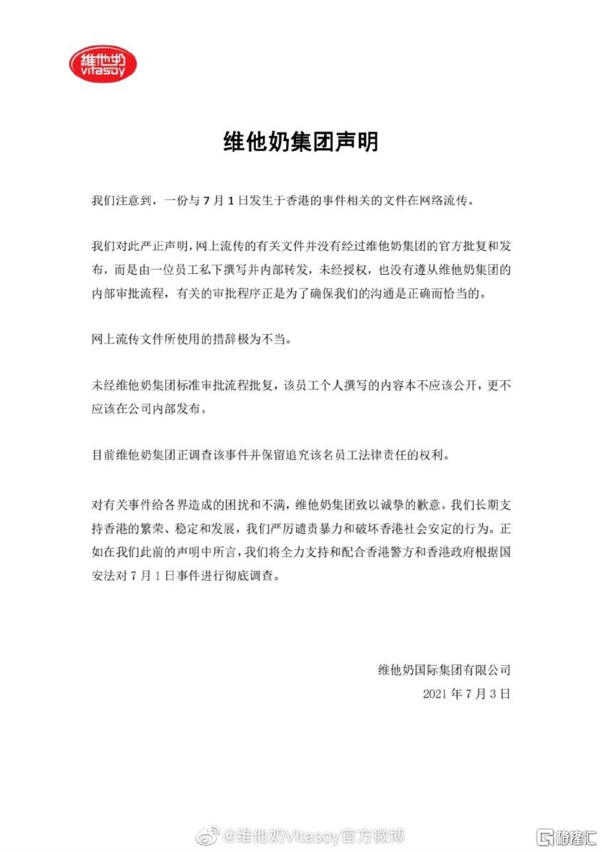 在某種意義上,這份內部通告已經代表了維他奶公司堂而皇之地支持恐怖主義和港獨分子的傾向。