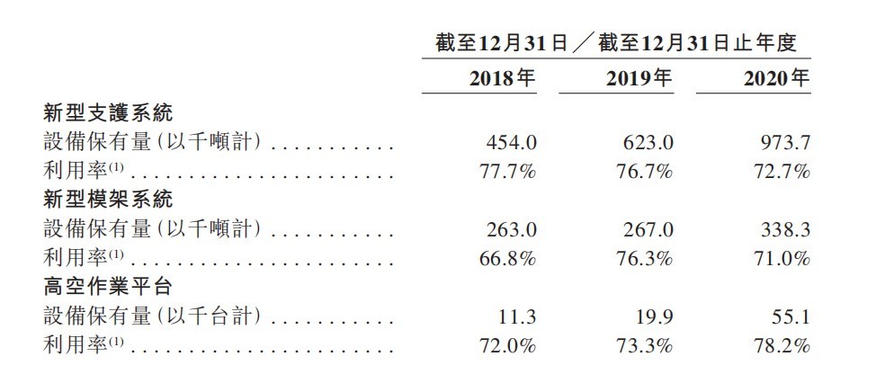 具體而言,公司在新型支護系統、新型模架系統及高空作業平台三個設備運營服務市場均獨佔鰲頭。