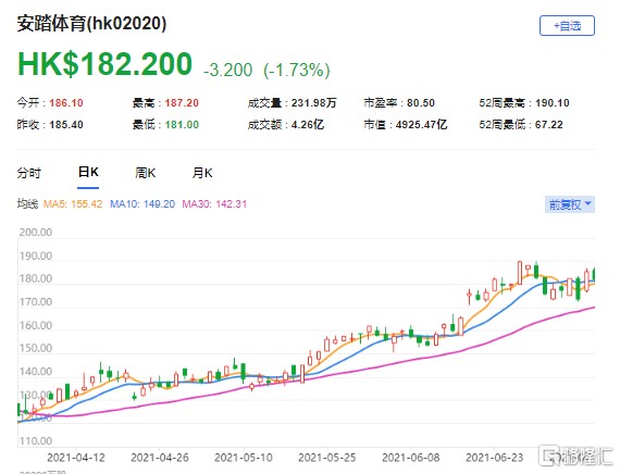 該行表示,將安踏 2021 至 2023 年銷售及盈利預測輕微上調 1% 至 3%,目標價由 191港元升 203港元,相當預測 2022 財年市盈率 40 倍,相信在規模增大及產品組合調整下,利潤率將可提升。