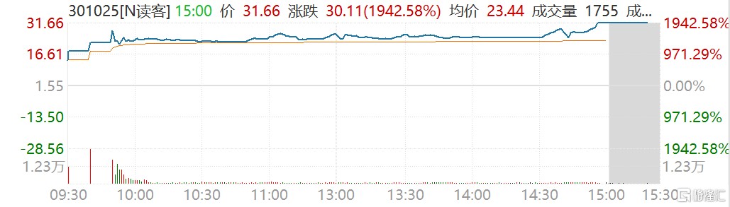 刷新多項紀錄!讀客文化首日上市收漲 1942%!
