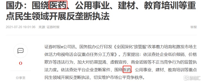 其實早在上週,國辦就發文要圍繞醫藥、公用事業、建材、教育培訓等民生領域開展反壟斷執法。這連續幾天下來,相關領域的反壟斷執法從來也沒停過,股市大跌的劇本,其實早就寫好了。