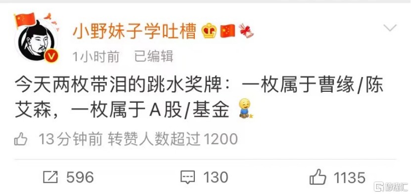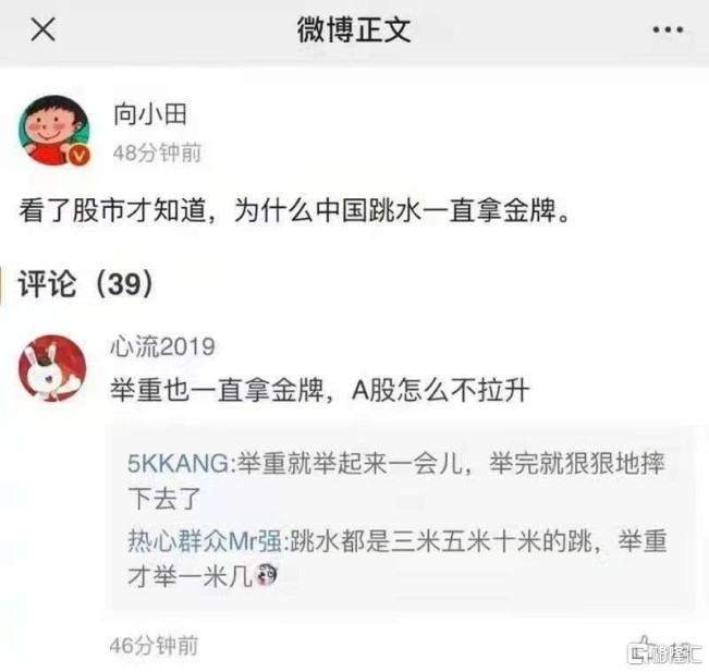 股市今天也參加奧運會跳水嗎?今天下午舉行的奧運會男子雙人 10 米跳台比賽,中國隊惜敗英國,痛失金牌。如果派大 A 跳水隊去參賽,今天這塊金牌絕對十拿九穩,大 A 這麼牛逼的跳水技術不去參加奧運跳水比賽真是可惜了。