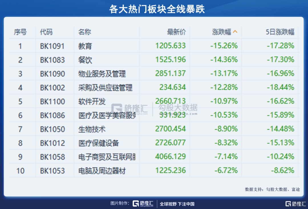 這幾天的 A 港股,從未有一天消停過,科技崩完教育崩,教育崩完醫藥崩,醫藥崩完白酒崩,原本以為大家都崩一回了就會苦盡甘來。沒想到的是,今天是所有板塊一起崩,大家都沒有逃過被反覆毒打的命運。