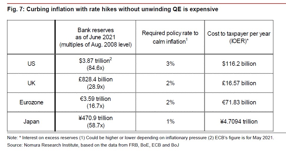 並且,屆時各國央行退出 QE 越晚,加息越猶豫,納税人未來所需承擔的加息成本也將越高。