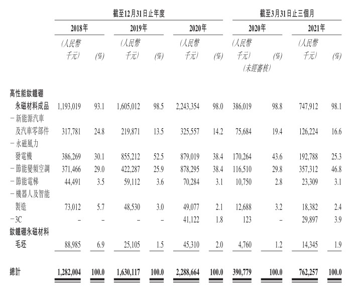 2018-2020 年,金力永磁的營業收入分別為 12.82 億元、16.30 億元和 22.89 億元,同比增速分別為 27% 和 40%。