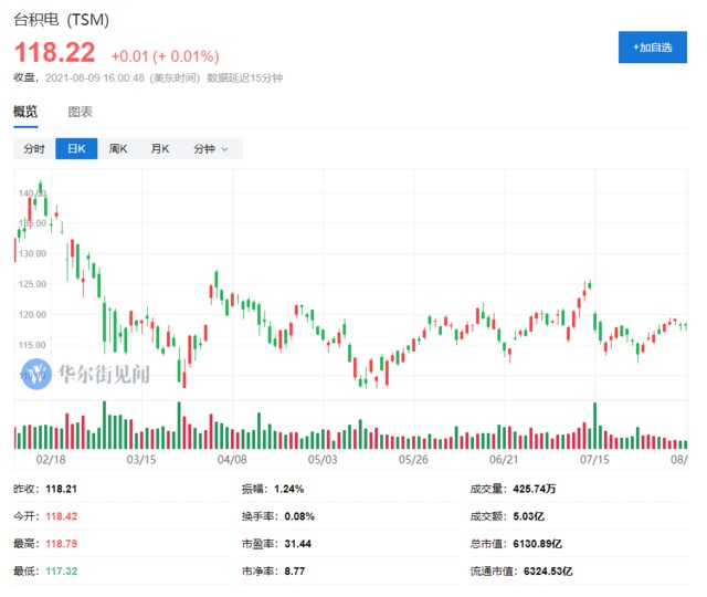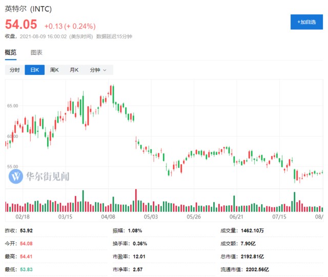 截至昨日美股收盤,英特爾股價報 54.05 美元,漲 0.24%;台積電股價報 118.22 美元,漲 0.01%。